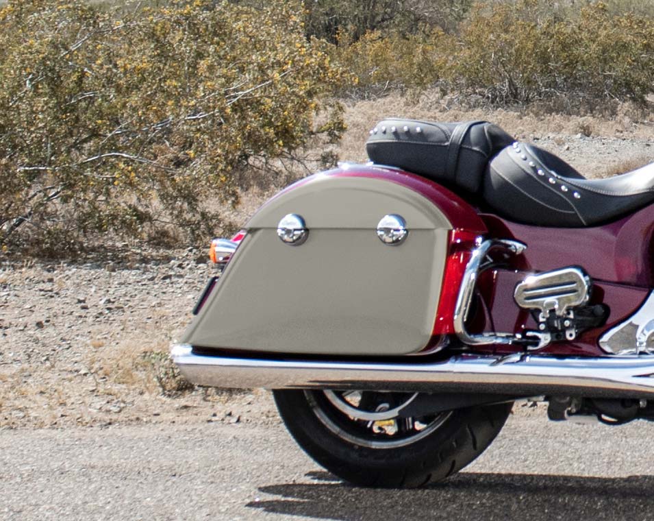 クイックリリース・ウインドシールド、リモートロック式ハードサドルバッグ、ハイウェイバー、ライドモード、ABS、クルーズコントロール、キーレスイグニッション、インディアン®スクリプトタンクバッジ、12V充電ポート