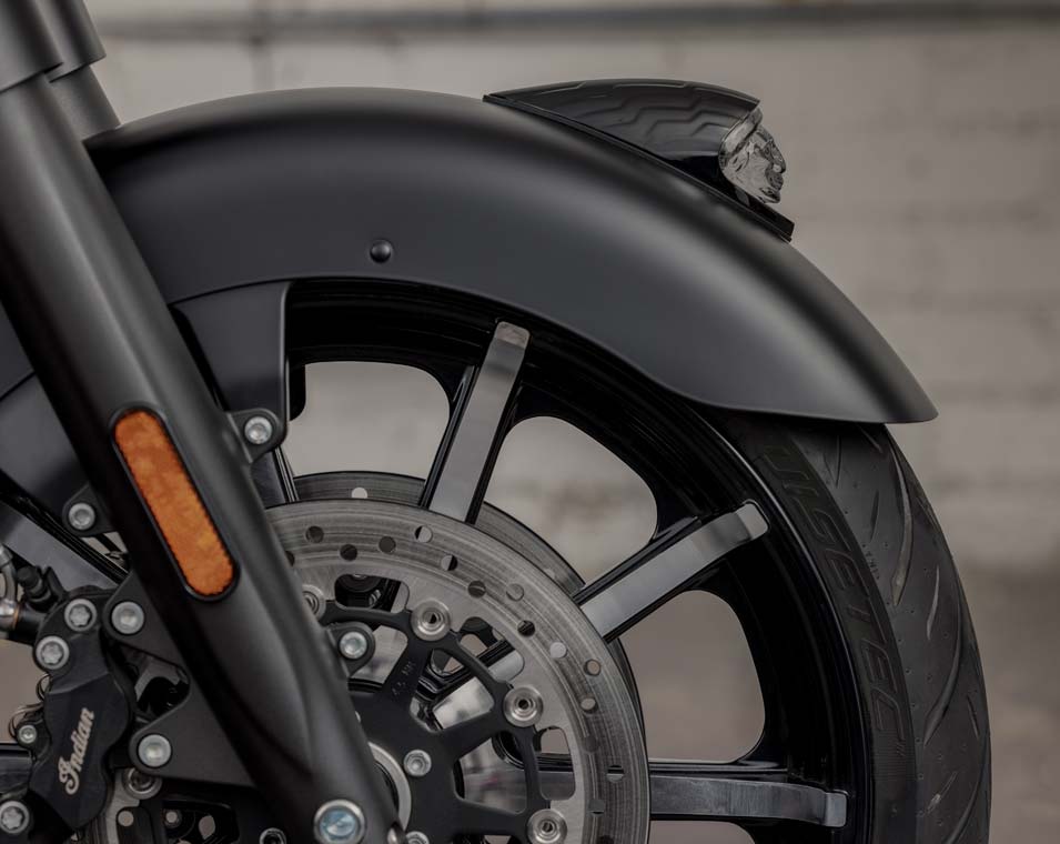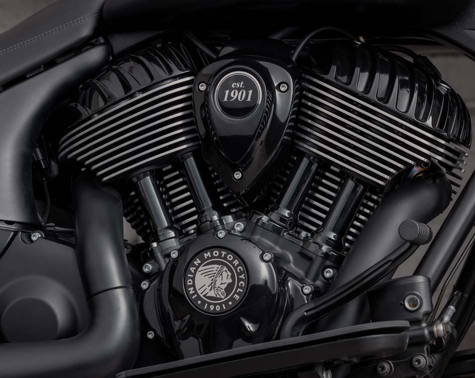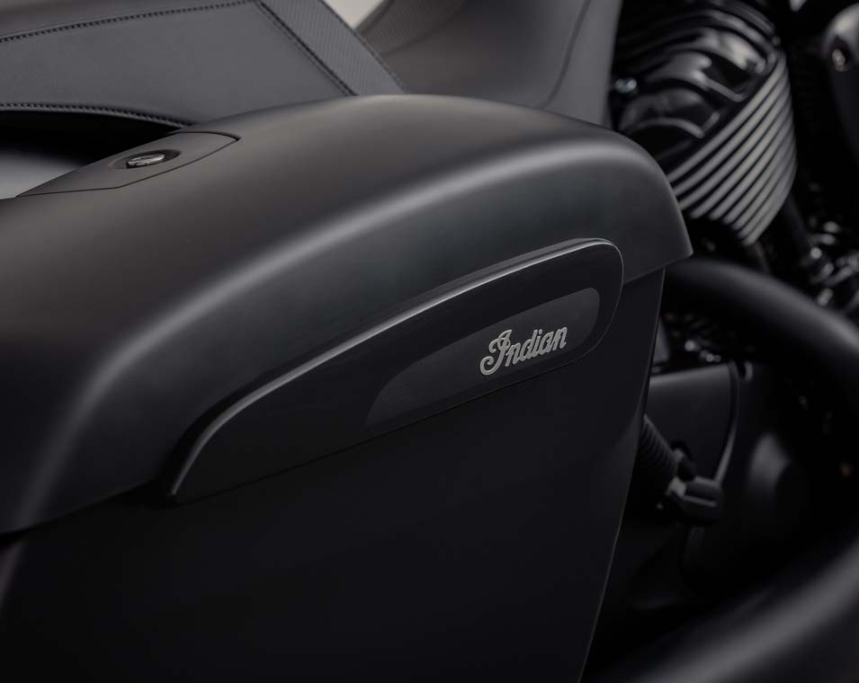 クイックリリース・ウインドシールド、リモートロック式ハードサドルバッグ、ハイウェイバー、ライドモード、ABS、クルーズコントロール、キーレスイグニッション、インディアン®スクリプトタンクバッジ、12V充電ポート