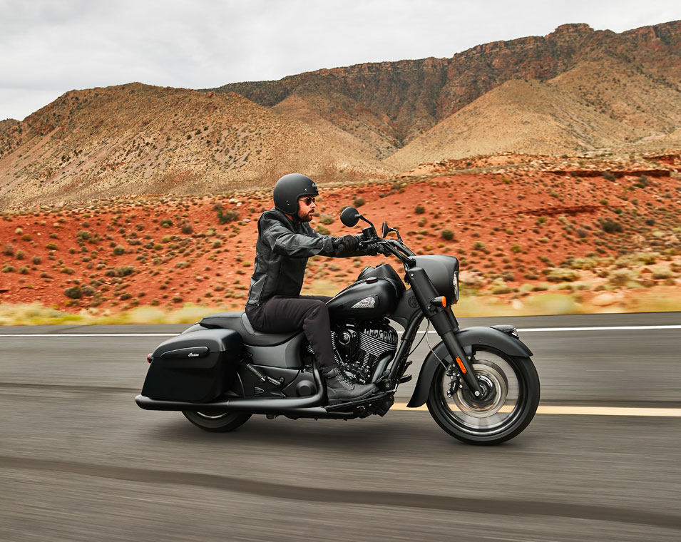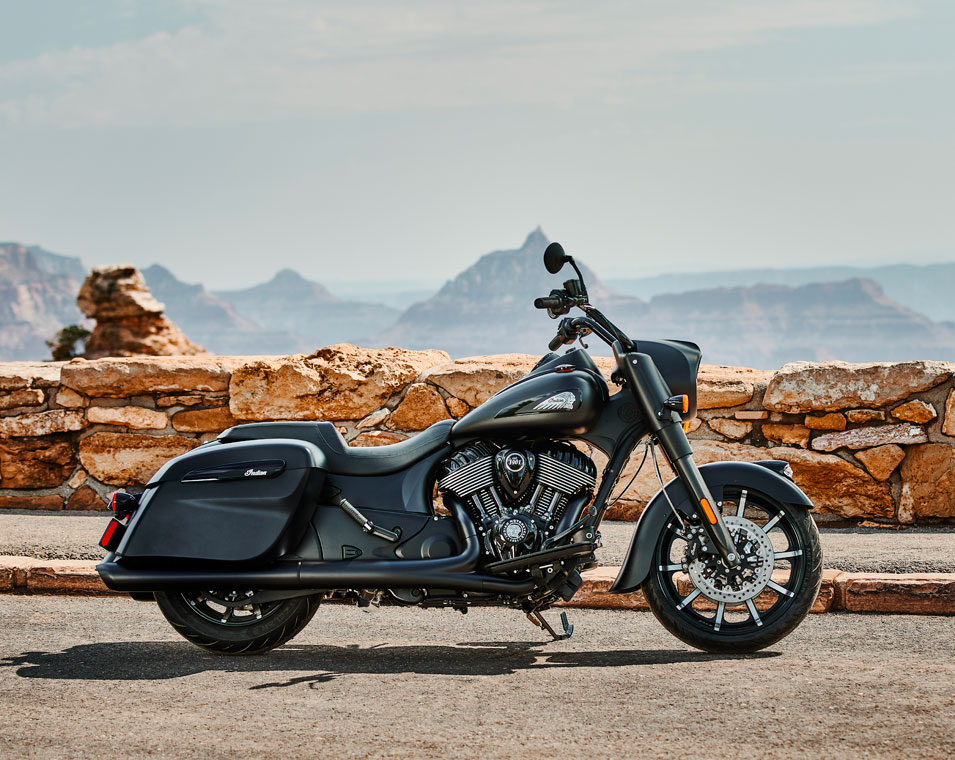 Indian Springfield Dark Horseは、より多くを求める人のためのモデルです。流線型のスタンス、パワフルなVツイン、不敵なスタイリングで、見た目通りの力強い走りを見せます。